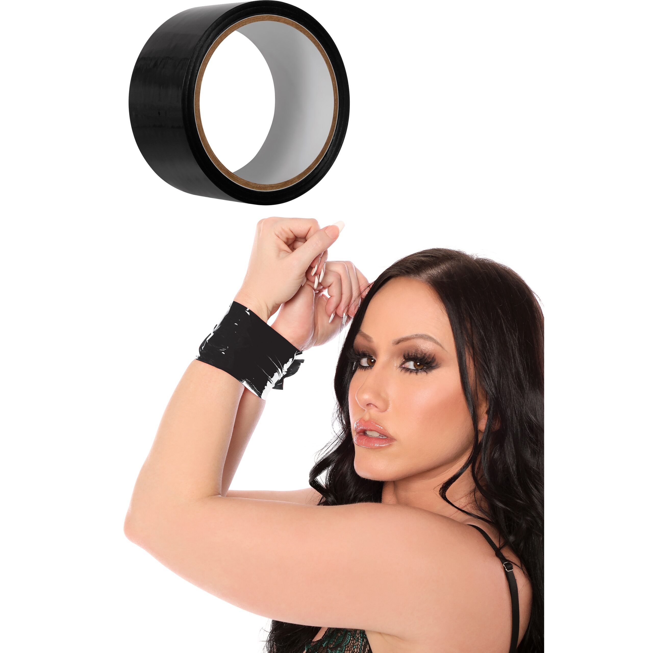 Bondage traka crna – Evolved idealan je način za stvaranje poveza za oči ili za vezanje ljubavnika za bilo koju površinu bez nereda koju može napraviti obična ljepljiva traka. Izvrsno se lijepi za sebe, ali ne za kosu ili kožu.