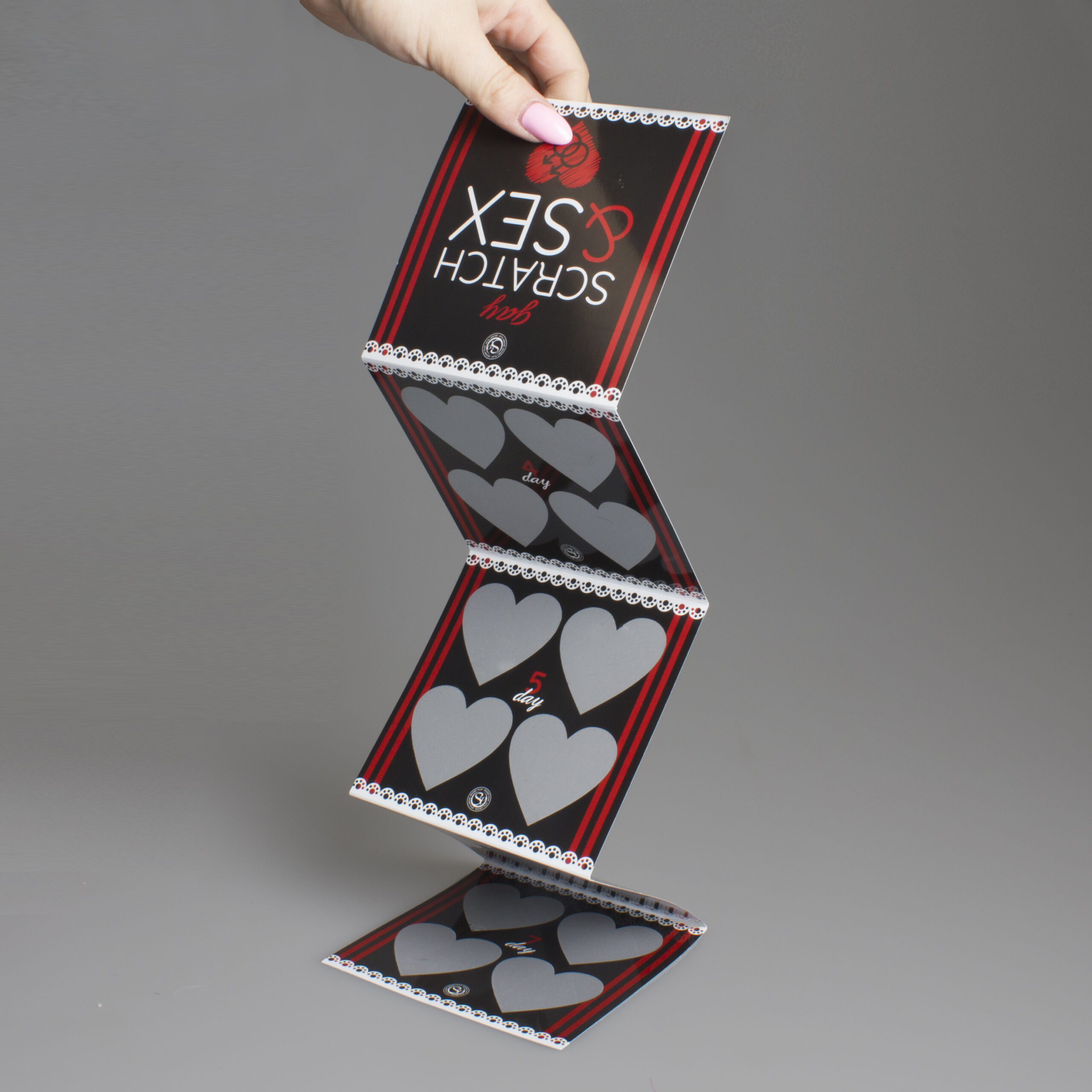 • Svakom danu u tjednu pripadaju četiri srca koja skrivaju različite seksualne poze. Svaki dan izaberite jedno od četiri srca s kojeg ćete struganjem skinuti emulziju i prepustiti se seks pozi koju ste otkrili. Trajanje igre je 7 dana.