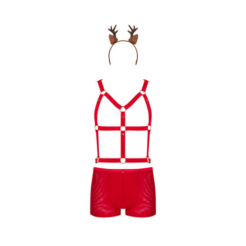 Mr Reindy set čine crvene bokserice s pričvrščenim zvončićem, crveni podesivi pojas također sa zvončićem te rajf za glavu sa vrlo efektnim sobovim ušima.