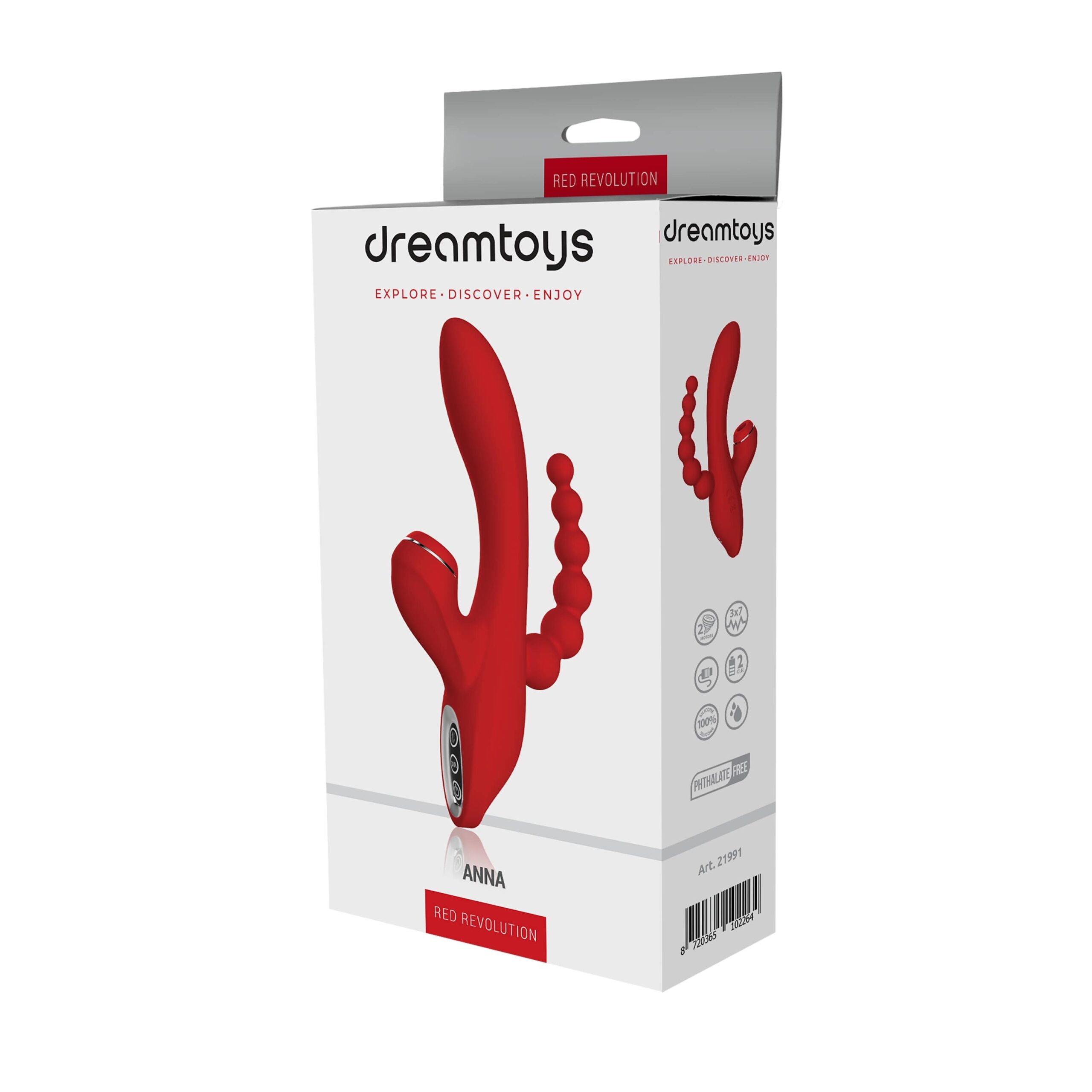 Vibrator – Red Revolution Anna više je od klasičnog vibratora i može pružiti trostruku stimulaciju. U isto vrijeme uživajte u vaginalnoj, klitoralnoj i analnoj stimulaciji.