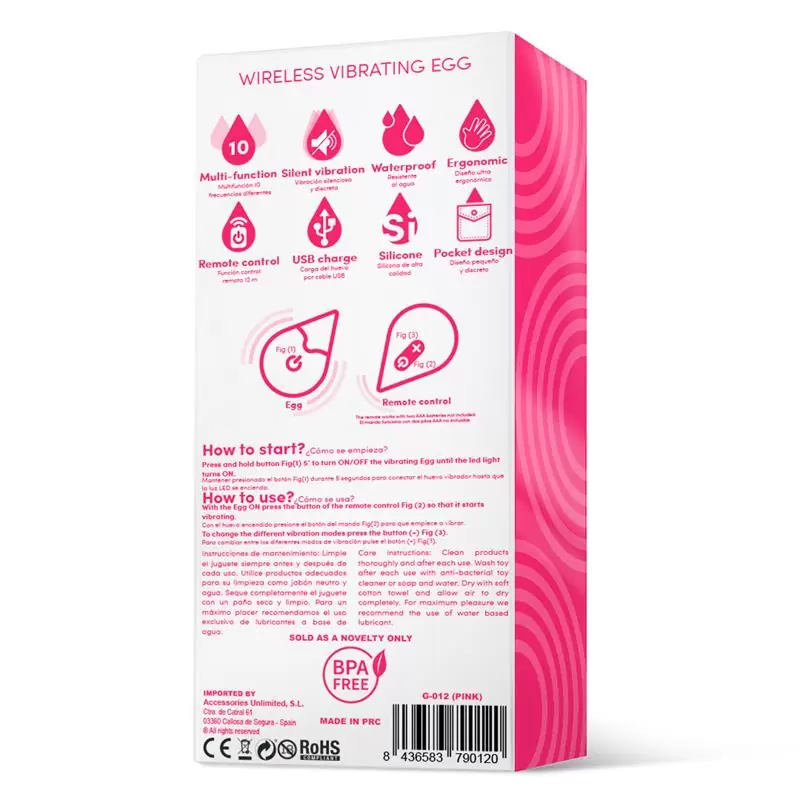 Tihi motor nudi 10 različitih vibracija, a njima možete upravljati daljinskim upravljačem s čak 6 metara! Vibracijama možete upravljati i tipkom na samom jajetu ukoliko ne želite koristiti daljinski upravljač. Vibrirajuće jaje se jednostavno puni preko USB kabela koji je uključen u pakiranju, dok daljinski upravljač koristi dvije AAA baterije koje nisu uključene u pakiranju. Vibrirajuće jaje je vodootporno što olakšava održavanje i čišćenje, a zabavu možete preseliti i pod tuš.